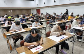 今年は年少さんからの参加ということで約1時間、前面の大型モニターでそろばんの仕組みや数の数え方を例年以上に時間をかけて学んだあと、テキストで練習問題にチャレンジしました。正解のはなまるマークをもらってニコニコ顔でした。そのあと話題のフラッシュ暗算にも全員チャレンジしました。